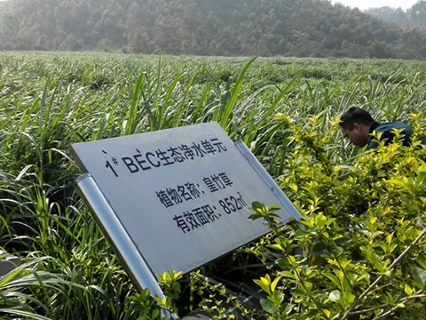 【工程概况】云浮市新兴县车岗镇生态净水系统(含主管网)建设工程设计处理规模为1000吨/天,主体工艺采用两级“复合生态净水工艺”。自2018年投入运行至今出水COD、BOD5、氨氮、总磷、大肠杆菌主要参数稳定满足《地表水环境质量标准》(GB3838-2002)III类标准,TN满足《城镇污水处理厂污水排放标准》(GB18918-2002)中一级A标准。